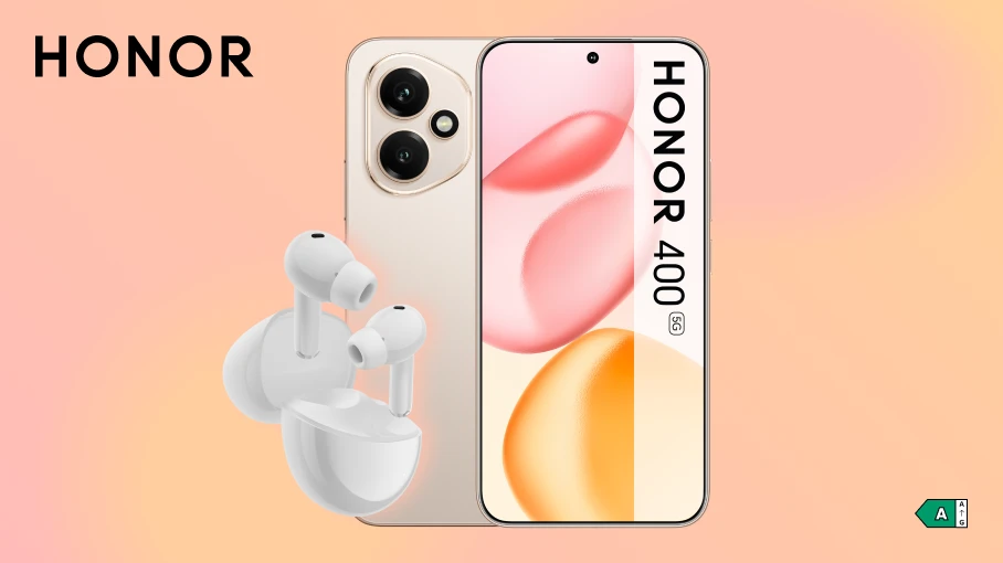 *Avec le forfait offre spéciale illimité 5G+. Engagement 24 mois. Après 40€ remboursés. Avec l'achat du Honor 400 5G, les Earbuds S8 sont 100% remboursés. DAS Honor 400 5G Tête : 0,77 W/Kg Tronc : 1,25 W/Kg Membres : 2,95 W/Kg