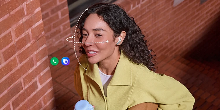 Acceptez vos appels ou parlez à Bixby sans dire un seul mot, les mouvements de votre tête contrôlent vos Samsung Galaxy Buds4. Magique ? Mais surtout pratique dans toutes les situations (5, 6). Vos nouveaux écouteurs Samsung intègrent aussi l’Interprète de Galaxy AI. Dans vos oreilles, la traduction. Sur votre smartphone Galaxy, la transcription. Finies les galères de traduction à l’étranger ! (7, 8)