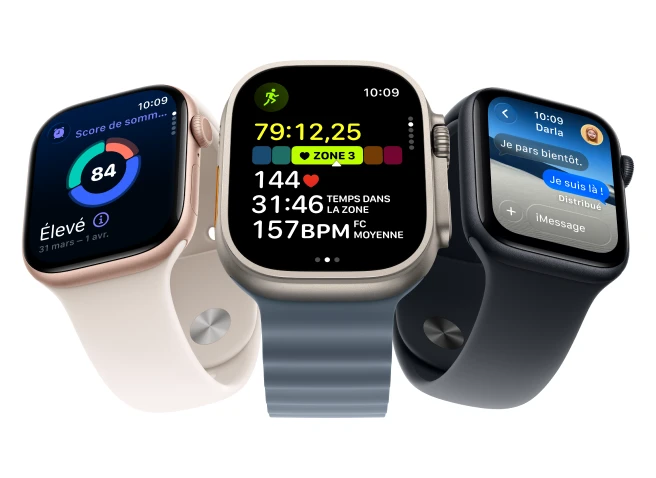 En savoir plus sur Apple IntelligenceApple Watch est la montre connectée d’Apple qui allie design élégant, performances et fonctionnalités de santé avancées. Elle permet de suivre l’activité physique, surveiller la fréquence cardiaque, détecter les anomalies de santé et encourager un mode de vie actif. Connectée à l’iPhone, elle offre des notifications, des appels, Apple Pay et désormais l’intégration d’Apple Intelligence pour des interactions plus intuitives et personnalisées.