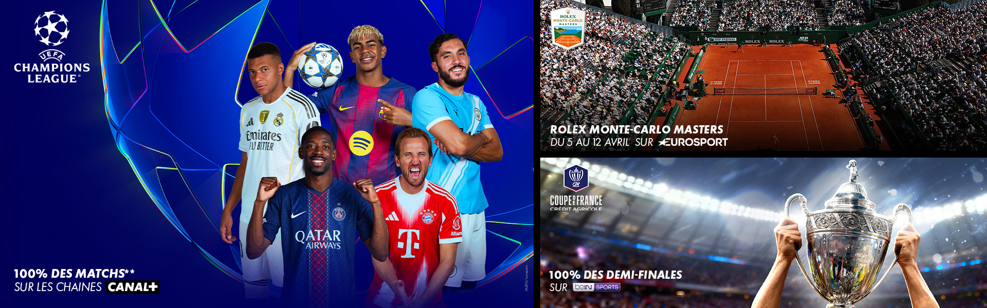 (3) Pendant le premier mois pour essayer (+ le mois en cours), possibilité de résilier votre contrat d’abonnement soit en vous rendant sur votre Espace Client CANAL+, rubrique « Contact/résilier mon abonnement » avant le 24 avril 2026 pour toute souscription en mars 2026, avant le 24 mai 2026 pour toute souscription en avril 2026, avant le 24 juin 2026 pour toute souscription en mai 2026, avant le 24 juillet 2026 pour toute souscription en juin 2026, soit en écrivant au Service Clients CANAL+ – TSA 86712 – 95905 CERGY-PONTOISE Cedex 9 au plus tard 3 semaines avant la fin du premier mois (+ le mois en cours). La résiliation sera effective à la fin du mois de votre demande. A défaut de résiliation, vous restez engagé dans les mêmes conditions jusqu’au terme de votre abonnement à L’EDITION SPECIALE CANAL+SPORT. Offre non cumulable avec toute autre offre promotionnelle CANAL+ en cours.